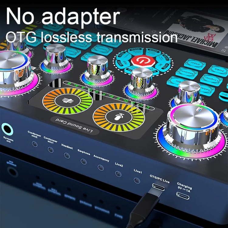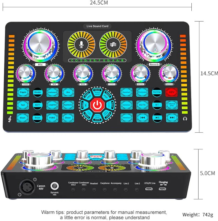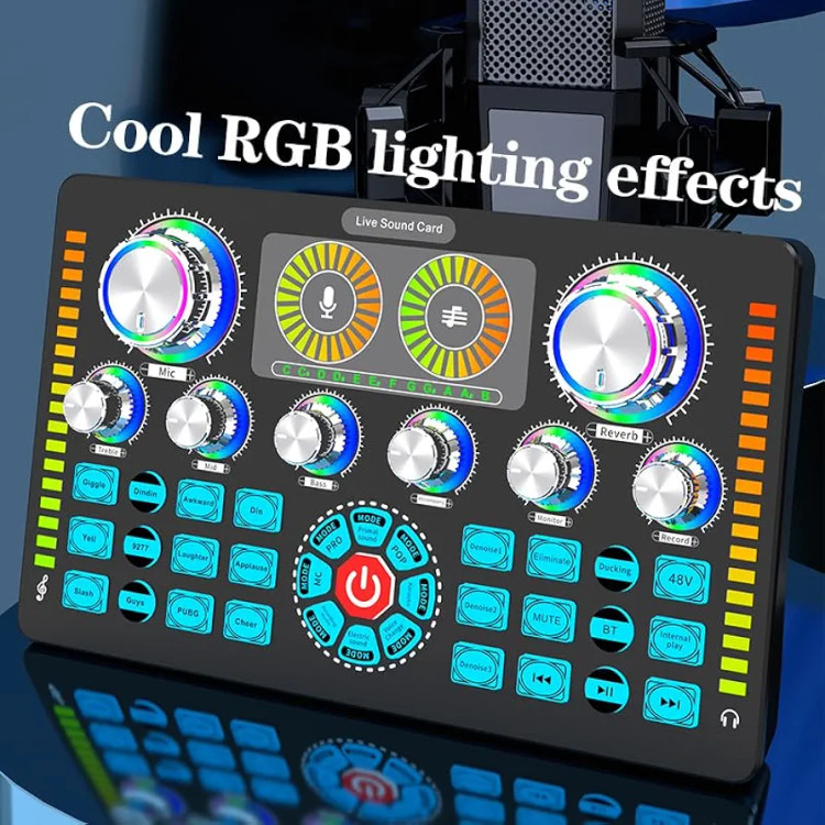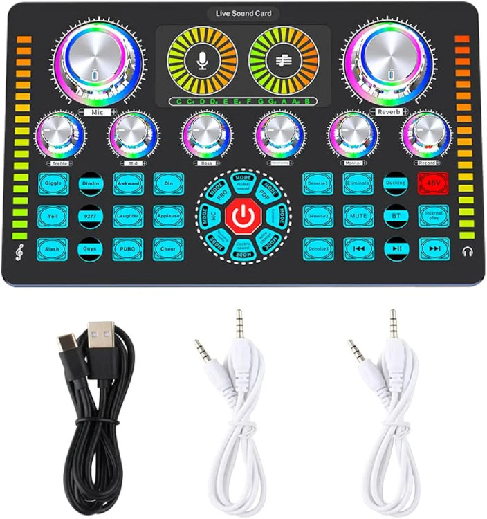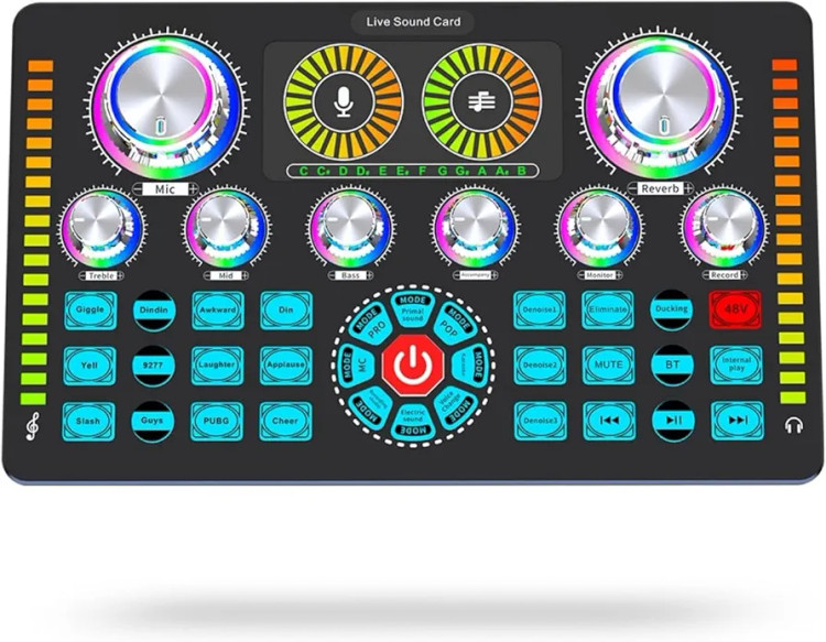 کارت صدای 8 کاناله RGB با قابلیت تغییر صدا و میکس آن،افکت های صوتی مدل Q7(بار آمازون)