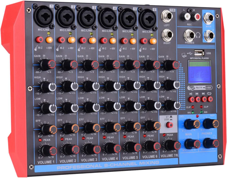Live Mixers Portable 8-Channel Mixing Console Digital Audio Mixer +48V Phantom Power Supports BT/USB/MP3 Connection for Music Recording DJ Network Live Broadcast Karaoke