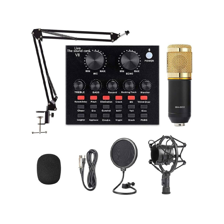 کیت میکروفن استودیویی BM800 همراه با کارت صدای v8(بار آمازون)