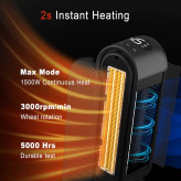 【گرمایش سریع 2S】فناوری گرمایش سرامیکی 1500 واتی PTC، گرمایش سریع، از طریق نوسان گسترده، این بخاری هوای گرم را در سراسر اتاق پخش میکند و به شما امکان میدهد از گرمای 2S لذت ببرید. ایده آل برای اتاق نشیمن، اتاق خواب، زیرزمین، گاراژ و موارد دیگر.