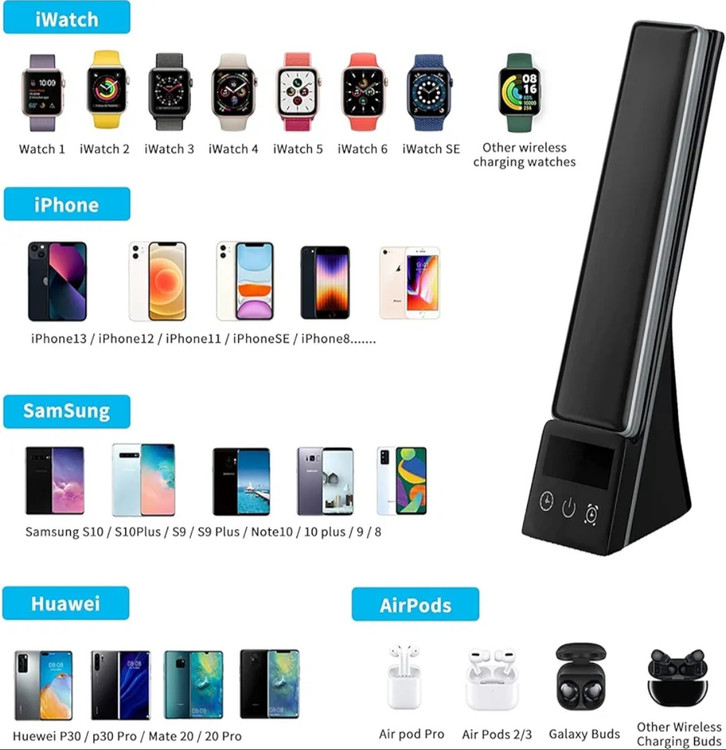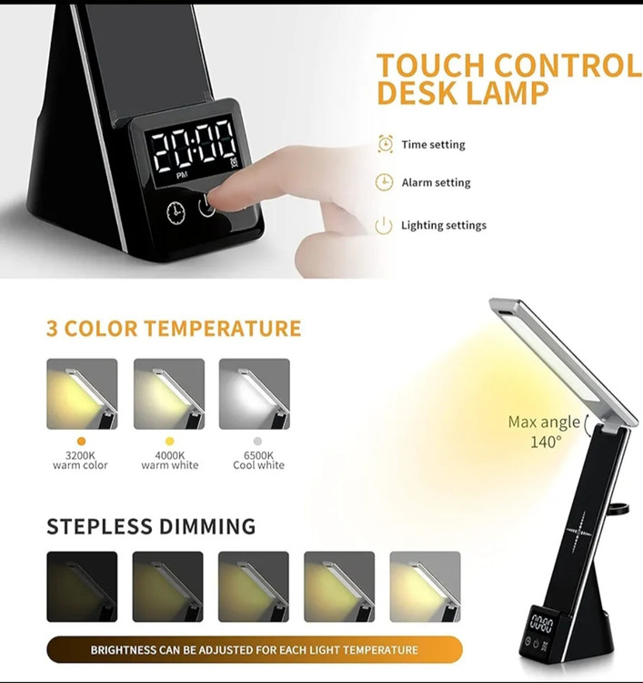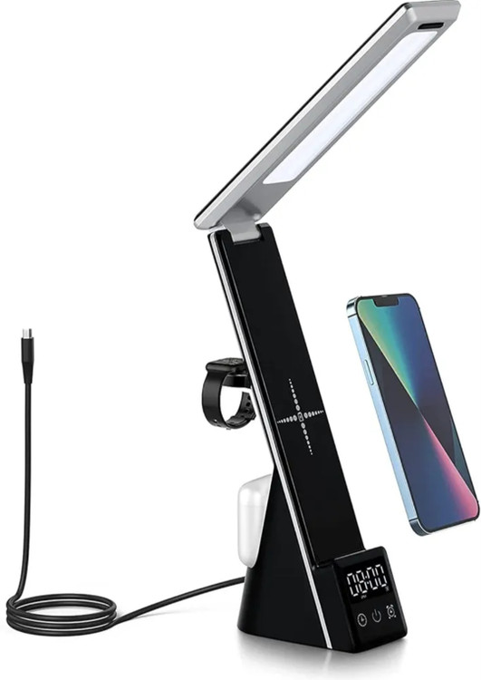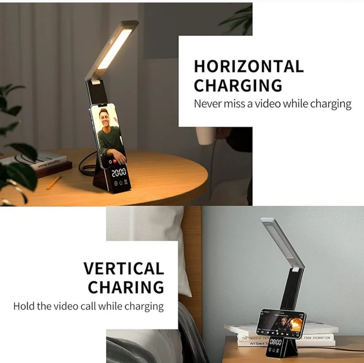 لامپ رومیزی چند منظوره و شارژرهای بیسیم ترکیبی از طراحی و عملکرد به شکلی منحصربهفرد از لوازم جانبی کاهنده شلوغی برای خانه و محل کار است. دارای کابل USB نوع C، دفترچه راهنمای کاربر و آداپتور است که می تواند نور بدون سوسو زدن و شارژ سریع داشته باشد، بنابراین نیازی به خرید لوازم جانبی اضافی ندارید.
