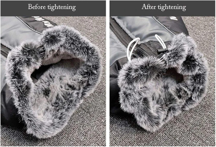 دور گردن و سینه قابل تنظیم و ضخیم شدن است، ضد آب، بازتابنده و چسبنده نیست. داخل لباس از ابریشم، کرکی و نرم، در حرارت سفت و در چندین رنگ قابل بیرون کشیدن است.