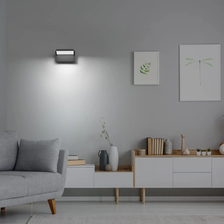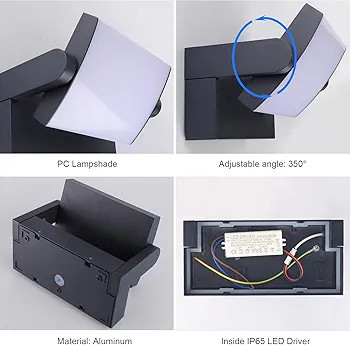 IP65 ضد آب: لامپ دیواری IP65 ضد آب است و از آلومینیوم با کیفیت بالا ساخته شده است، بنابراین دارای مقاومت عالی در برابر آب است، بنابراین می توان از آن نه تنها در داخل خانه بلکه در فضای باز نیز استفاده کرد.