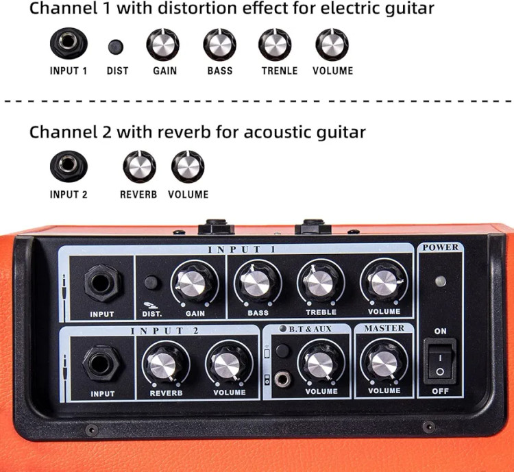 【قابل حمل】: با پوسته چوبی ظریف و طراحی اندازه جمع و جور، آمپلی فایر گیتار را می توان به راحتی از طریق بند در هر مکانی حمل کرد، که آن را برای استفاده در سفر کاملاً مناسب می کند.