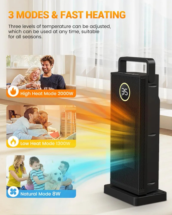 بخاری فن دار Cnkeeo از فناوری گرمایش سرامیکی پیشرفته PTC استفاده می کند و این قابلیت را دارد که فوراً گرم شود تا دمای اتاق را در مدت زمان کوتاهی افزایش دهد تا بتوانید به سرعت گرما را احساس کنید. عملکرد چرخشی با زاویه بزرگ می تواند گرما را به طور مساوی توزیع کند و به طور موثر کل اتاق را گرم کند. همچنین دارای چهار حالت گرمایش (2000W/1300W/8W/ECO) است که در تمام طول سال قابل استفاده است.