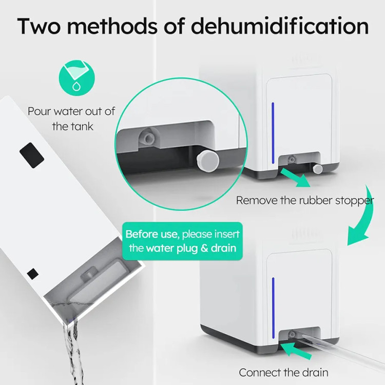 عملکرد بیصدا و استفاده بدون نگرانی: با نویز کاری کمتر از 35 دسیبل از آرامش خاطر لذت ببرید. دو حالت سرعت رطوبت زدایی را مطابق با نیاز شما تنظیم می کند. مخزن آب 1.8 لیتری اجازه می دهد تا بدون تخلیه مکرر کار کند. وقتی مخزن پر می شود دستگاه به طور خودکار متوقف می شود و این را با نشانگر قرمز نشان می دهد. یک نشانگر قرمز چشمک زن نشان دهنده وجود مخزن نادرست برای ایمنی بیشتر است.