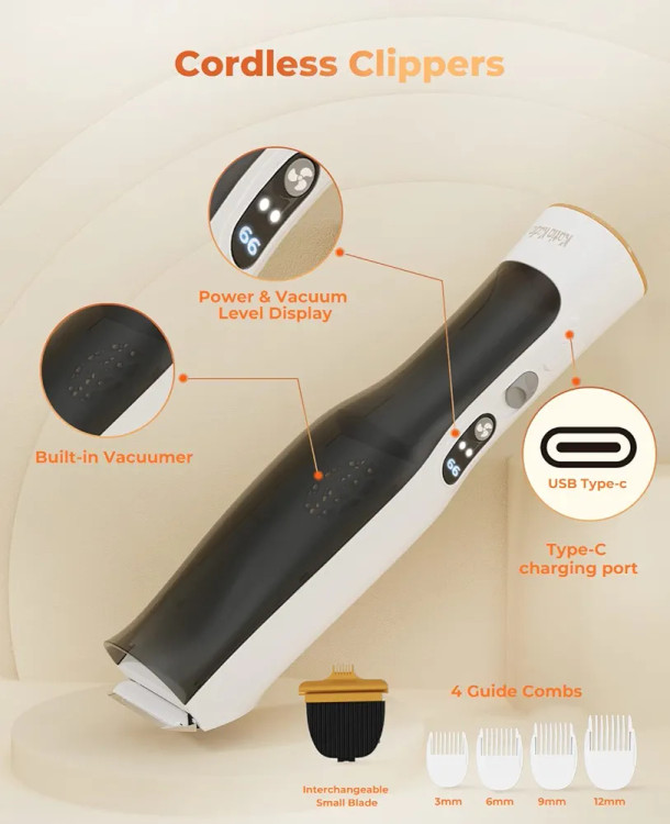 Katio Kadio Pet Dog Grooming Vacuum Cleaner, 60dB Low Noise Dog Grooming Vacuum Cleaner Kit for Sucking Up 99% Hair, Grooming Tools for Small Medium Dogs