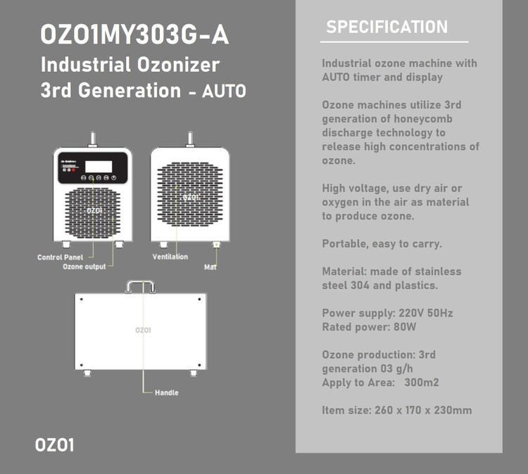 تولید ازن: 0.01 کیلوگرم در ساعت (0.022 پوند در ساعت)