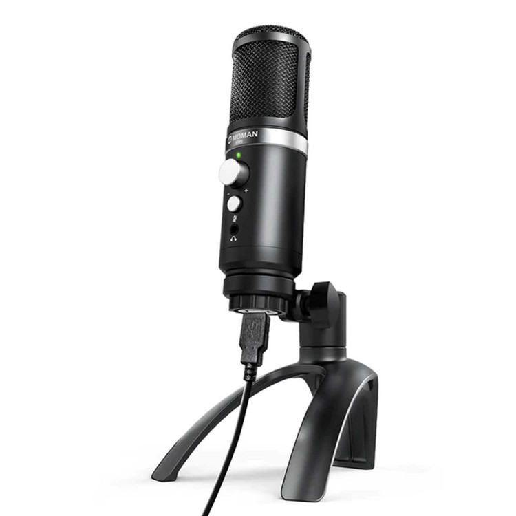 میکروفون استودیویی مومان مدل EM1 یک میکروفون رومیزی با وزنی کم و ابعادی استاندارده که جنس ABS (پلاستیک مقاوم) و فلز اون خیال شما رو از طول عمری بالا مطمئن میکنه. این محصول با دو کابل به طول 1.5 متر از نوع USB به Type-C و دیگری از نوع USB به USB عرضه میشه. EM1 یک میکروفون کاندنسر با الگوی قطبی Cardioid هست که با فرکانس پاسخگویی 20 هرتز تا 20 کیلوهرتز و امپدانس حدود 2.2 کیلو اهم و حساسیت 45±3 دسیبل قابل استفاده هست و برای عملکرد خودش به منبع تغذیه خارجی نیازی نداره.