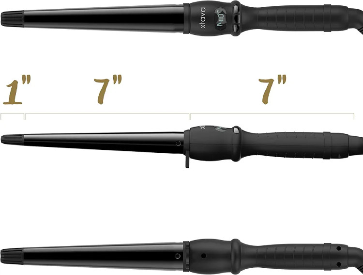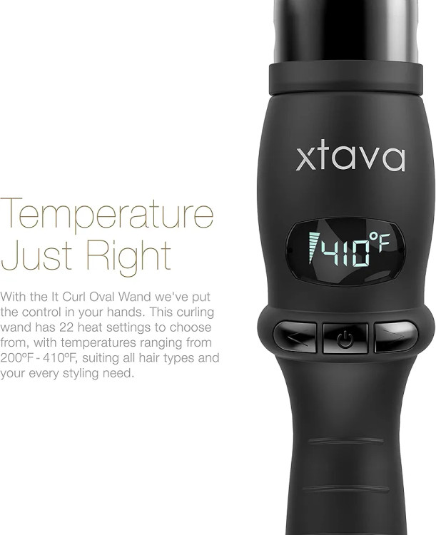 اتو بیضی شکل حرفه ای xtava It Curl دارای یک بشکه سرامیکی 0.75 تا 1.25 اینچی با نوک خنک برای ایجاد امواج ساحلی بی دردسر است.
