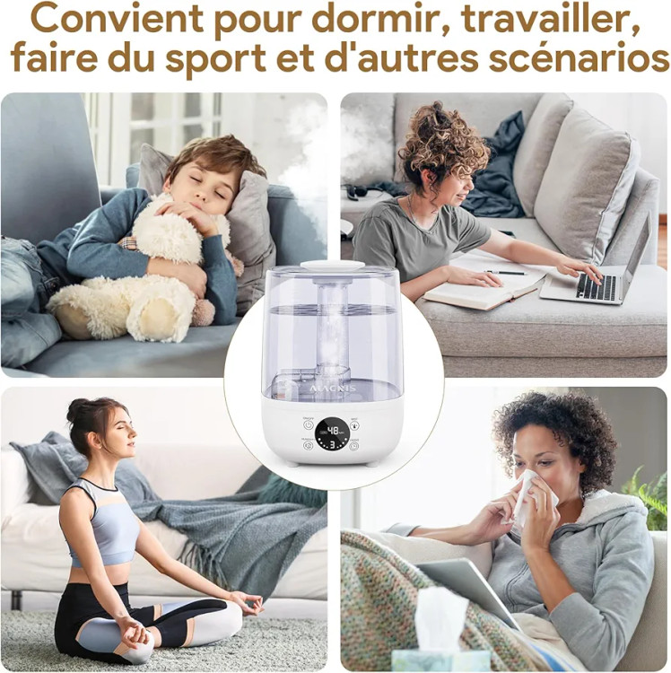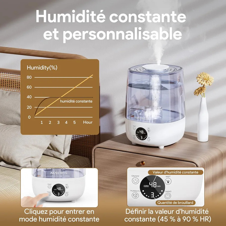 مرطوبسازی کارآمد: با طراحی یک نازل اسپری دوتایی 360 چرخشی و سیستمهای مرطوبکننده پیشرفته، مرطوبکننده مه ریز به هوا میدهد و اتاق شما را پر میکند، به سرعت رطوبت را افزایش میدهد و به طور موثر ناراحتی ناشی از هوای خشک را تسکین میدهد. و رطوبت ساز دارای 3 حجم مه قابل تنظیم است تا نیازهای شما را برآورده کند، از یک فضای راحت لذت ببرید.