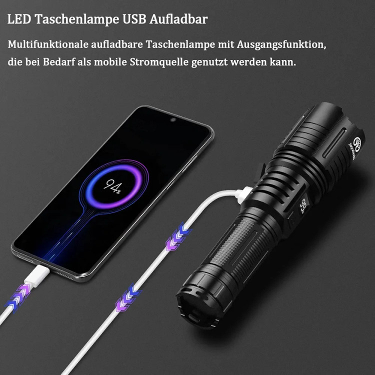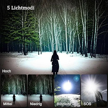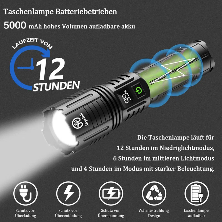 چراغ قوه LED جکسینلی، 5000 لومن، چراغ قوه با روشنایی بالا، قابل شارژ از طریق USB، چراغ قوی با ۵ حالت نوری، مناسب برای کمپینگ، موقعیتهای اضطراری و دویدن با سگ.