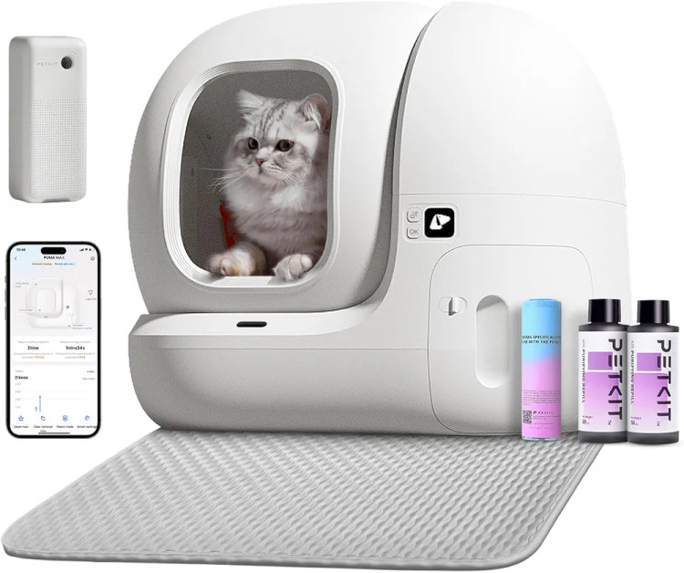 لیست بستهبندی: PETKIT PuraMax، اسپری هوشمند تصفیهکننده هوا K3، تشک بستر گربه، غربالکننده بستر خاکی، پاککننده بستر گربه، کیسه زباله، 20 عدد، شارژ مجدد تصفیه هوا، 2 بطری، برق آداپتور، راهنمای کاربر، شروع سریع، برچسبهای DIY.