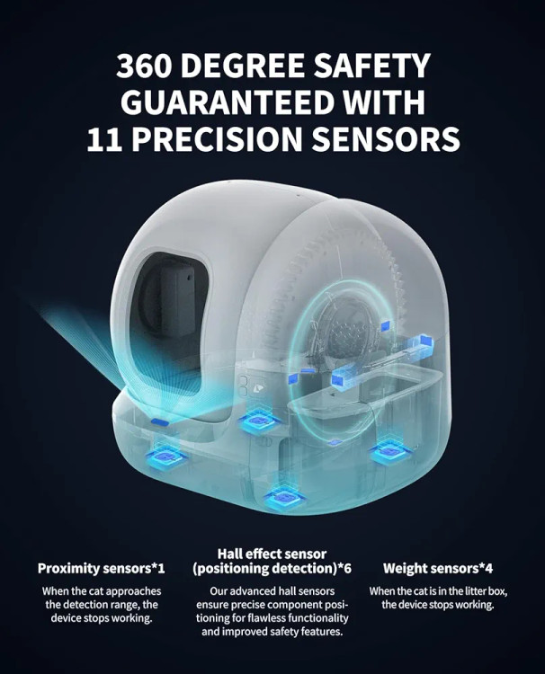 100٪ ایمن برای گربه ها: سیستم xSecure با چندین مکانیسم ایمنی و همچنین حسگرهای هوشمند عالی، تجربه ای امن را به گربه شما ارائه می دهد. این شامل حسگر مادون قرمز، سنسورهای وزن، هشدار از راه دور، سیستم حفاظت از تصادف و تشخیص هوشمند برای ایمن نگه داشتن گربه های شما می باشد. به علاوه، هنگامی که گربه شما نزدیک می شود یا تغییر وزن را تشخیص می دهد، به طور خودکار متوقف می شود. نکات: محدوده وزن قابل استفاده برای گربه ها: 1.5 کیلوگرم تا 8 کیلوگرم، برای حیوانات خانگی جوان زیر 6 ماه استفاده نکنید.