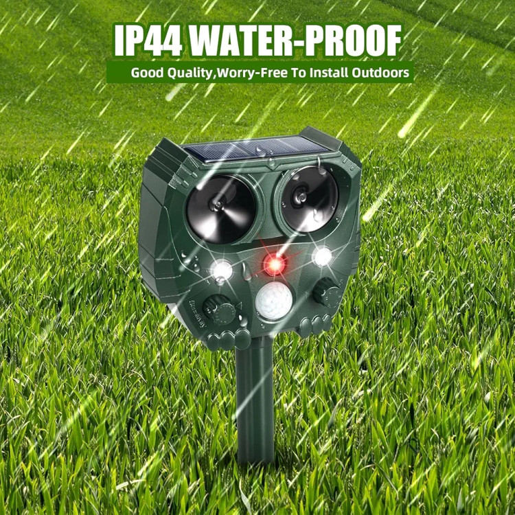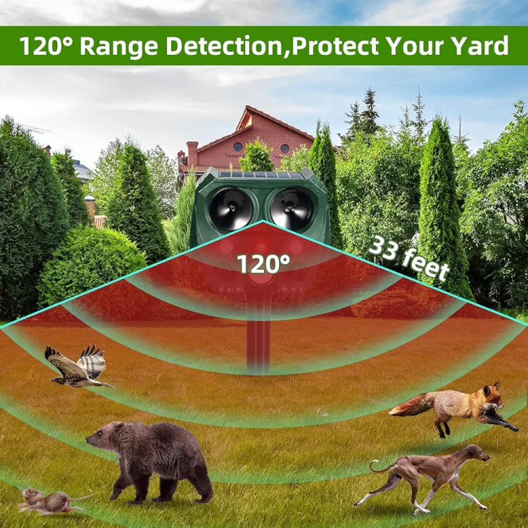 🦊【دفع حیوانات خورشیدی با سنسور حرکت】دفع حیوانات خورشیدی ما دارای سیستم تشخیص حرکت داخلی با حساسیت بالا است. هنگامی که حیوانات وحشی برای ورود تشخیص داده می شوند، دافع حیوانات یک مدل اولتراسونیک قوی و همچنین یک چراغ LED چشمک زن برای ترساندن حیوانات منتشر می کند. این یک راه انسانی است. سونوگرافی حیوانات وحشی را می ترساند اما به آنها آسیب نمی رساند