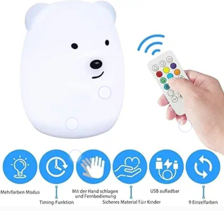 تغییرات LED شگفت انگیز: چراغ خرس دارای 9 رنگ است. پس از فشار دادن کلید روی خرس ضربه بزنید یا از کنترل از راه دور برای تغییر رنگ لامپ استفاده کنید.