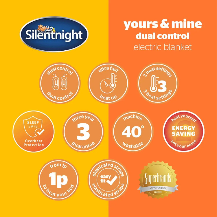 Silentnight Dual Control Electric Blanket King Size - Heated Electric Underblanket Bed Warmer Sheet with 3 Heat Settings, Easy Fit Straps and Split Controls - King Size 160x150cm (63"x59")