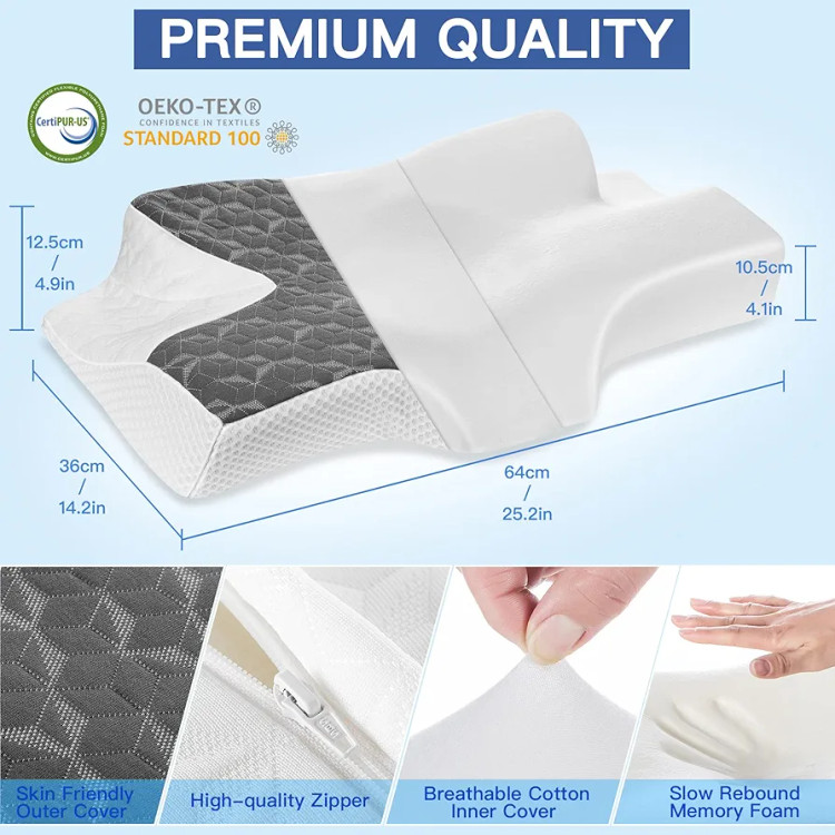 طراحی ارگونومیک: بالش دهانه رحم دارای طراحی ارگونومیکی است که به خم شدن طبیعی گردن شما کمک می کند، سر، گردن و شانه های شما را پشتیبانی و تراز می کند تا حالت خواب خوبی داشته باشید. شیارهای خاص بالش دهانه رحم در طرفین به بازوهای شما اجازه می دهد تا استراحت خوبی برای حمایت کامل داشته باشند و از بی حسی جلوگیری کنند.