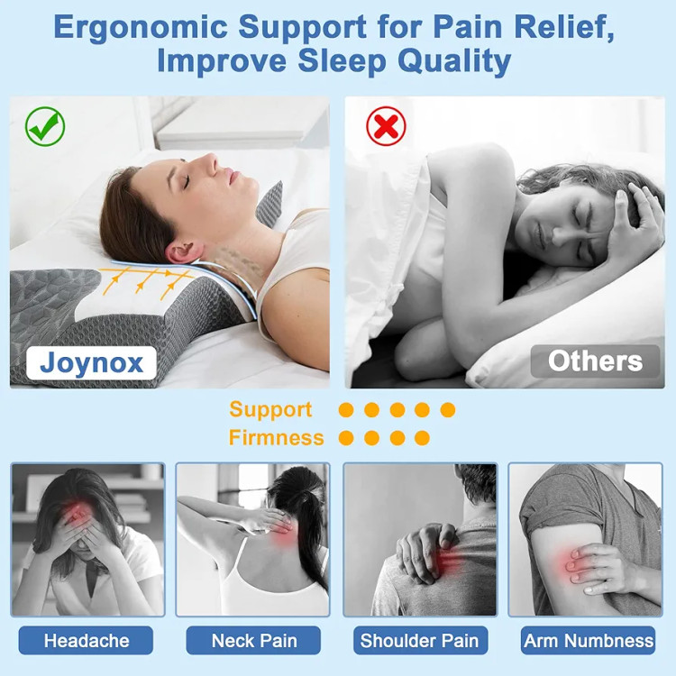 دو ارتفاع قابل تنظیم: اندازه بالش ارگونومیک Joynox 25.2 x 4.9 x 14.2 اینچ (L x H x W) است با مشکلات دهانه رحم میتوانند از قسمت بالایی گردن خود برای هماهنگ نگه داشتن گردن خود با بدن خود استفاده کنند. پایین که می تواند به کاهش فشار شانه کمک کند.