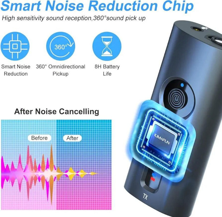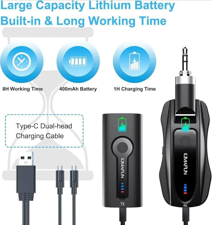 زمان کار 8 ساعت: فرستنده و گیرنده را می توان در 1 ساعت به طور کامل شارژ کرد و تا 8 ساعت قابل استفاده است. نشانگر باتری به وضوح پیشرفت شارژ و جریان باقی مانده باتری را نشان می دهد.