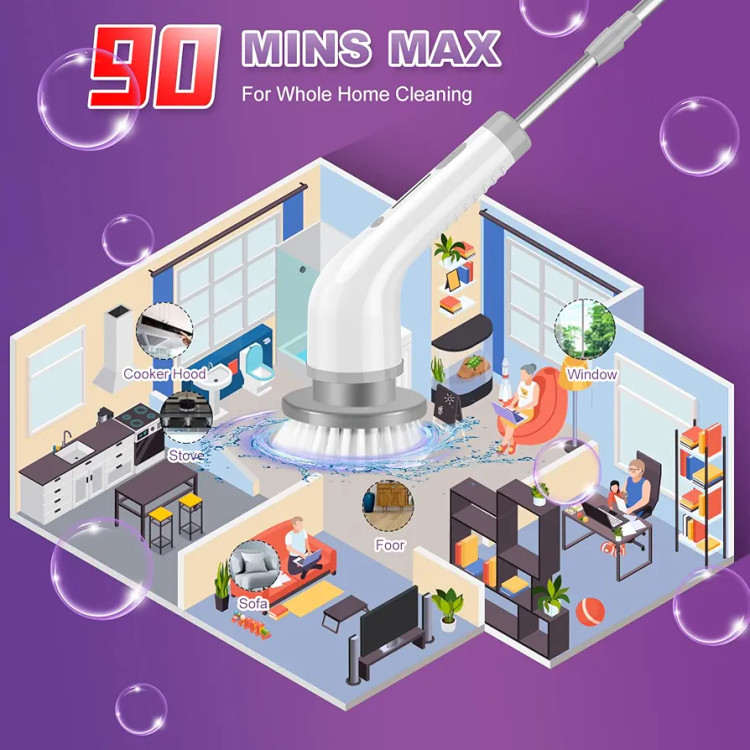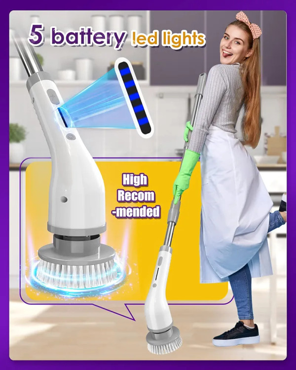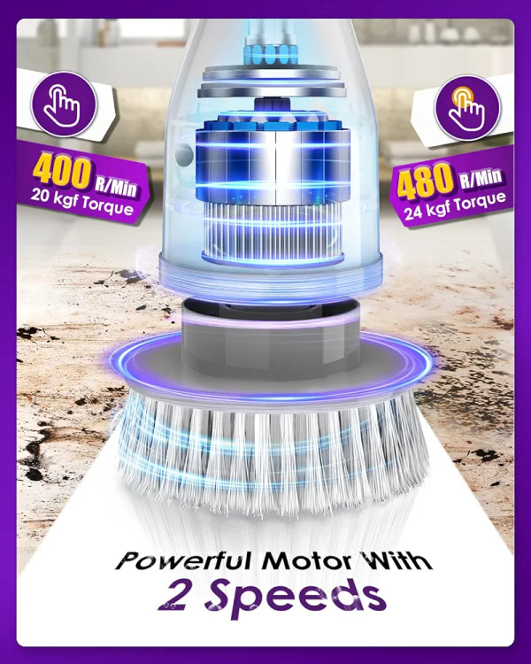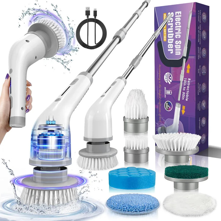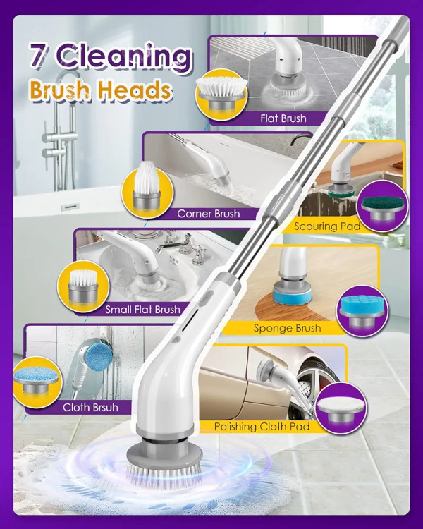 2 High Speeds Electric Spin Scrubber, 7 Replaceable Cleaning Brush Heads, Rechargeable Cordless Shower Scrubber with Adjustable Extension Arm, Power Bathroom Scrubber for Car Grout Sink Tub Tile Floor