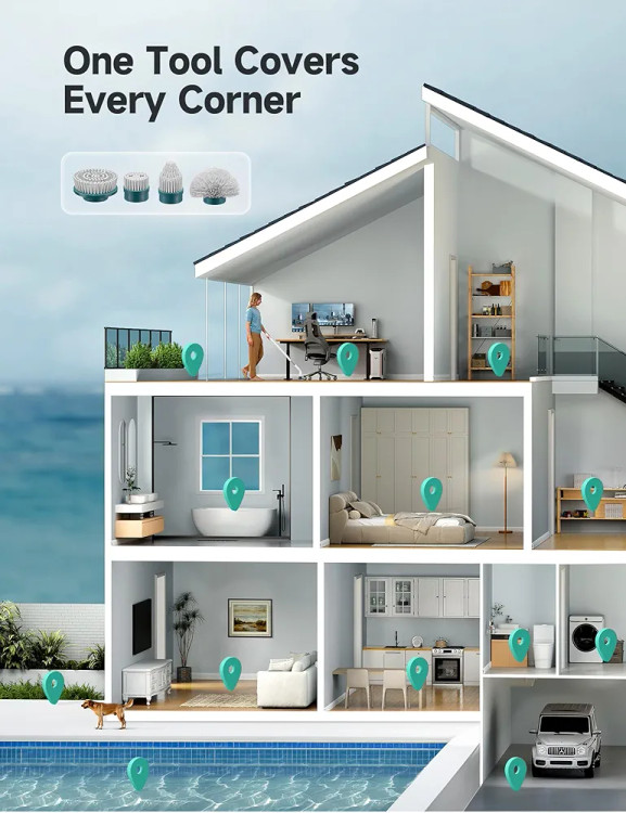 4 برس برای هر نیاز نظافتی: پاک کننده برقی چرخشی HiCOZY بیش از 15 قسمت مانند حمام، دستشویی، اتاق نشیمن، اتاق غذاخوری، اتاق مطالعه، آشپزخانه، باغ، حیاط خلوت، گاراژ، اتاق زیر شیروانی، بالکن، اتاق انبار، کمد، لباسشویی را به طور موثر تمیز می کند. اتاق ها و استخرهای شنا. توجه: سر برس های جایگزین HiCOZY اکنون در فروشگاه HiCOZY ما به فروش می رسد.
