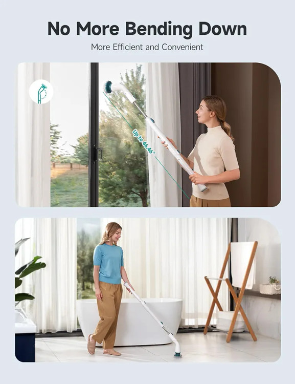 صرفه جویی در زمان و تلاش: اسکرابر چرخشی الکتریکی HiCOZY دارای طراحی ارگونومیک با دستگیره جمع شونده تا 46.46 اینچ است.