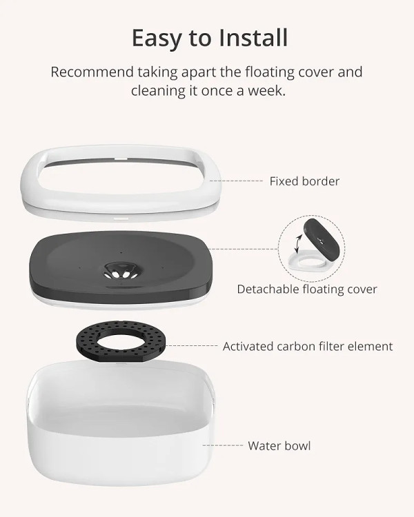 WATER CLEAN: صفحه شناور با یک عنصر فیلتر با جذب بو از ریزش گرد و غبار و مو به داخل آب جلوگیری می کند. کاسه سگ پتاس ساخته شده از مواد بدون BPA برای حیوانات خانگی بی خطر است