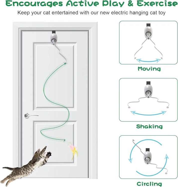 🪶【اسباببازیهای پر تعاملی برای گربهها】اسباببازی برقی گربه آویزان دارای طناب و پرهایی است که با فشار دادن یک دکمه میچرخند و بال میزنند. با سرعت های قابل تنظیم و سه حالت حرکت، اسباب بازی های تعاملی گربه طوری طراحی شده اند که حرکات طعمه را تقلید کنند، غریزه شکار گربه شما را تحریک کرده و ساعت ها سرگرمی را ارائه می دهند.