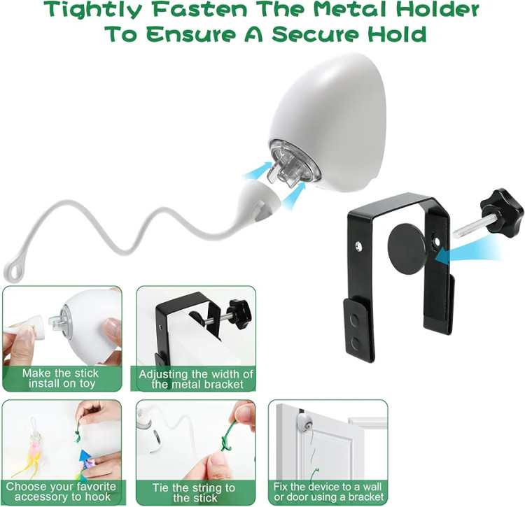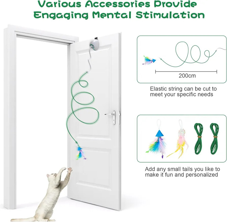 🛠️【زمان بازی دست ساز】این اسباب بازی گربه تعاملی با یک طناب الاستیک ارائه می شود که می توانید به راحتی آن را در صورت نیاز به طول کامل تنظیم یا برش دهید. گربه محبوب شما برای پرهای پرنده و طناب تاب می خورد دیوانه خواهد شد. علاوه بر این، می توانید جنبه خلاقیت خود را بیان کنید و مطابق با ترجیحات بچه گربه خود، اقلام کوچک اضافی مانند منگوله های رنگارنگ یا موش های نرم بسازید.