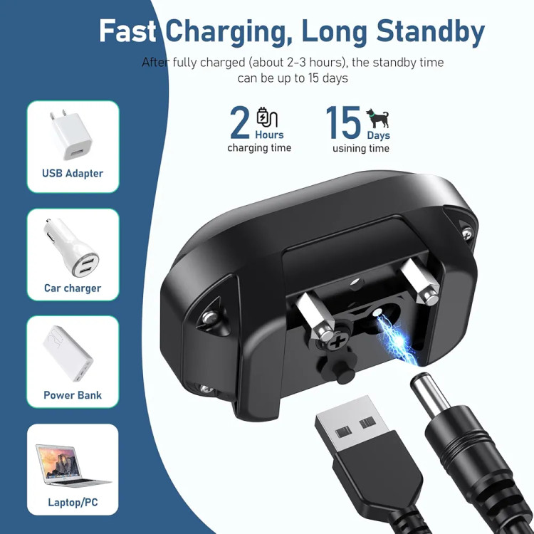 شارژ سریع و ضد آب IP67: قلاده پوست سگ HenBrook دارای یک باتری قابل شارژ USB داخلی است که می تواند به سرعت در عرض 2-3 ساعت به طور کامل شارژ شود و 15 روز استفاده را فراهم کند. طراحی ضد آب IP67 برای استفاده در فضای باز در هر شرایط آب و هوایی.