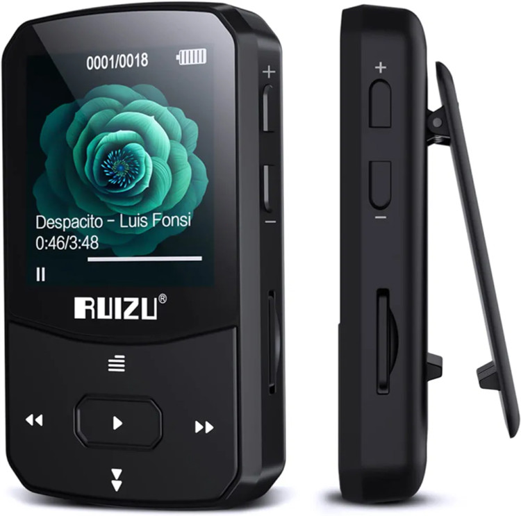 Ruizu X52 Mini Sport Clip Bluetooth MP3 Player 8GB Music Player Support TF Card FM Radio Recording E-Book Stopwatch (Black)