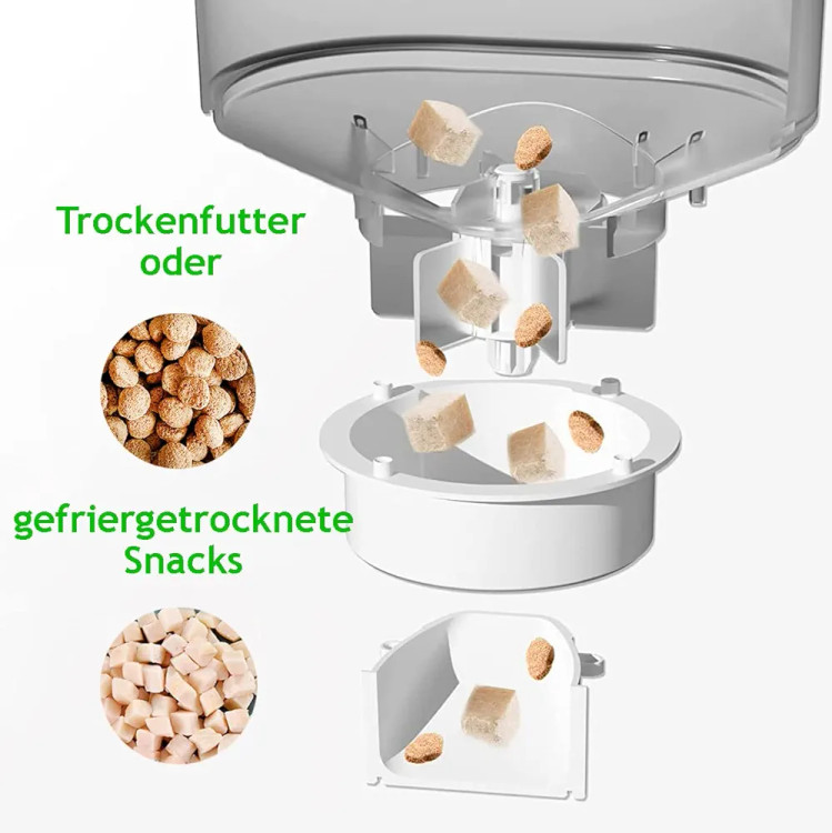 تغذیه خودکار دارای یک عملکرد زمانبندیشده و کمی است که به صاحبان این امکان را میدهد تا زمان غذا و مصرف غذا را بر اساس نیازهای حیوانات خانگی خود تنظیم کنند و به حیوانات خانگی اجازه میدهد تا عادات غذایی منظمی را تحت مراقبت صاحبان خود ایجاد کنند.