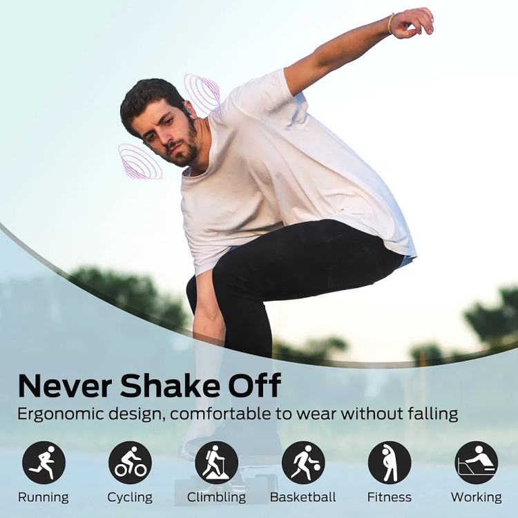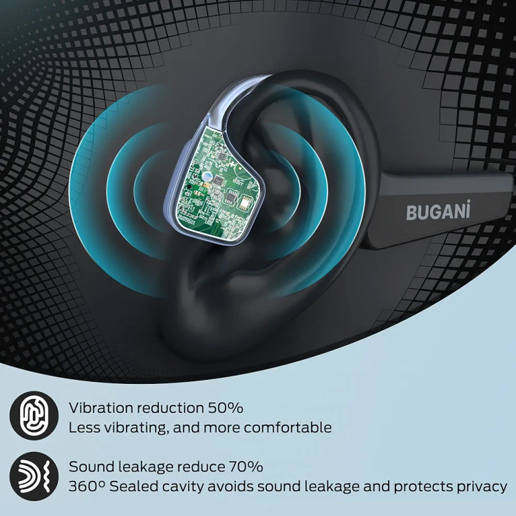 【طراحی ایمن گوش باز】 هدفون گوش باز Bugani مشکل درد در کانال گوش ناشی از هدفون های بی سیم معمولی را حل می کند و تجربه گوش دادن راحت و طبیعی را به ارمغان می آورد. علاوه بر این، طراحی گوش باز تضمین میکند که از صدای مورد علاقه همراه با آگاهی از محیط برای بهبود اتصال و ایمنی در مقایسه با هدفونهای سنتی یا هدفون روی گوش لذت ببرید.