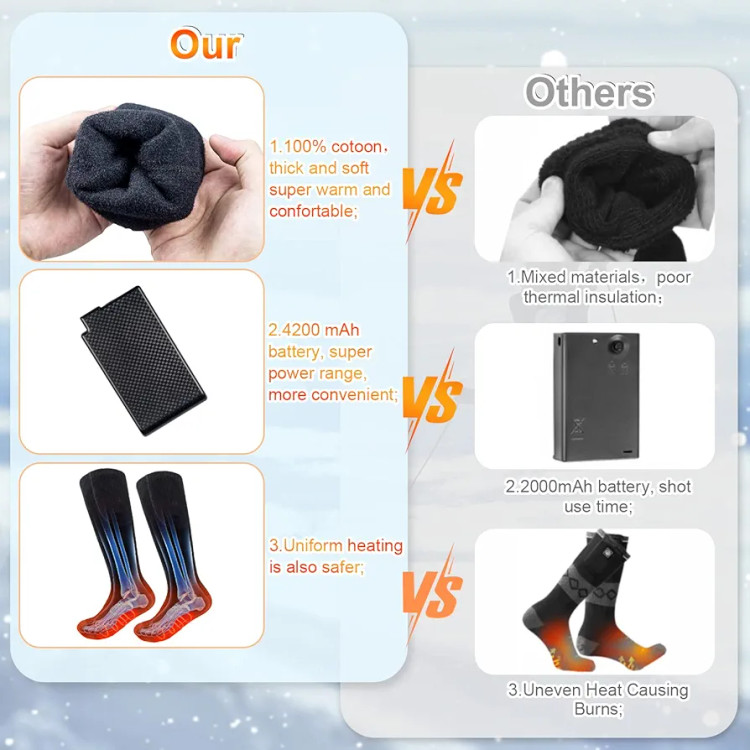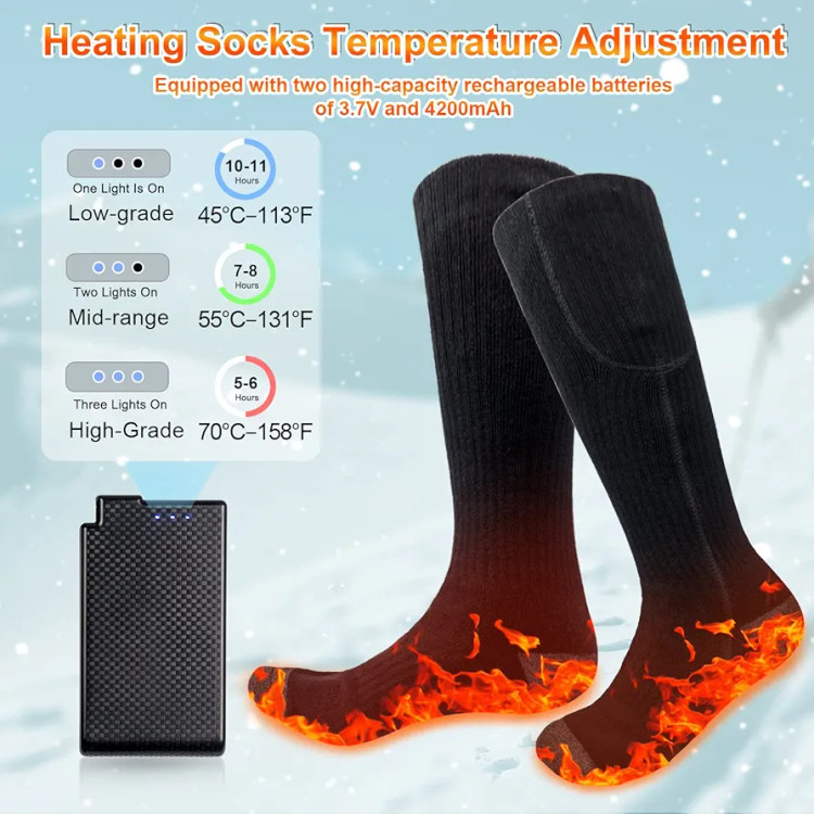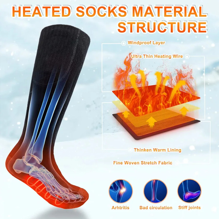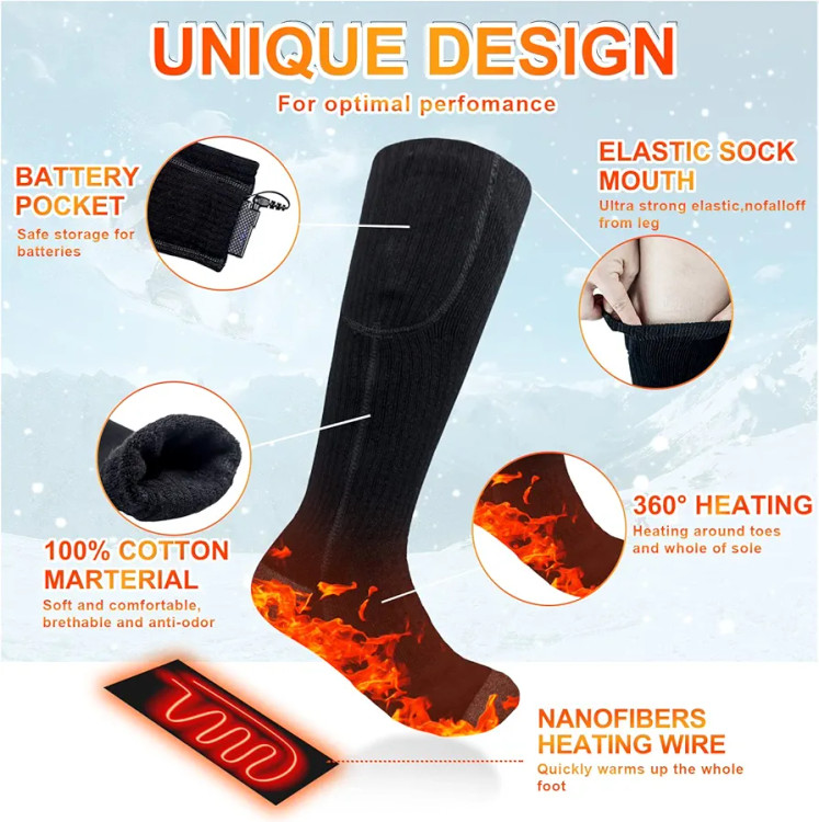 【گرمای ایمن تمام پا را پوشش میدهد】جورابهای برقی با عناصر گرمایش مادون قرمز دور و دمای پایدار میتوانند در هوای سرد گرما را برای شما فراهم کنند تا دیگر پاهایتان سرد و سفت نباشند.