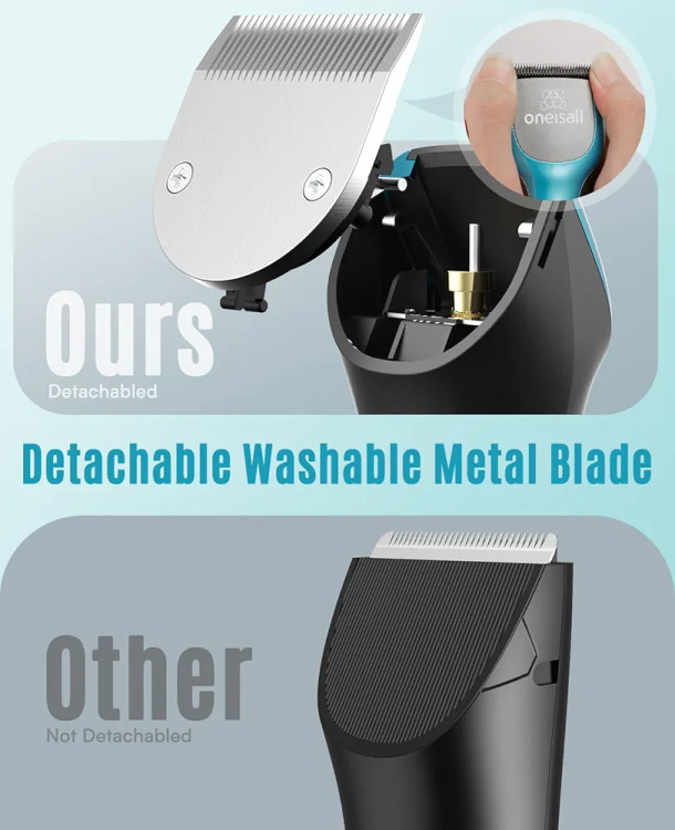 تیغه های فلزی جداشدنی و ضد زنگ: این قیچی موی سگ مجهز به تیغه های فلزی با دقت ارتقا یافته و ایمن تر است. تیغه قابل جابجایی برای تمیز کردن آسان مو و طول عمر بیشتر. ضد آب و تمیز کردن آسان