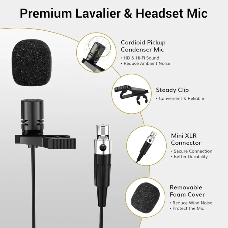 راحتی و انعطاف بیشتر: مجموعه ما شامل یک بادی پک، میکروفون و میکروفون هدست است که دستان شما را در موقعیت های مختلف آزاد می کند. این کوله پشتی دارای صفحه نمایش LCD، کنترل های جداگانه صدا و سوئیچ ON/MUTE/OFF برای جلوگیری از پخش صداها در حین انتقال است و تجربه یکپارچه را تضمین می کند.