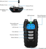 【قلادههای ضد آب برای سگها با صفحه نمایش LCD با نور پسزمینه】 گیرنده قلاده سگ از طراحی ضدآب با درجه بالا قابل خیساندن IPX7 استفاده میکند که میتواند آزادی بیشتری را برای فعالیتهای خارج از منزل برای حیوان خانگی شما فراهم کند. سگ حتی می تواند آن را برای شنا ببرد. و فرستنده از راه دور دارای یک صفحه نمایش LCD با نور پس زمینه است که می تواند به شما در آموزش سگ خود در هر زمان کمک کند.