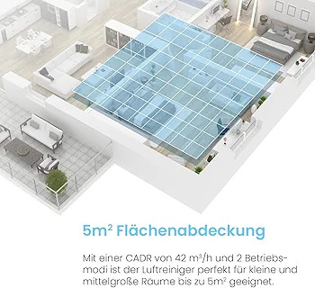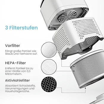 تصفیه هوا 4 در 1: تا 99.97 درصد ذرات معلق در هوا، گرد و غبار، گرده، دود، کپک بو و شوره حیوانات خانگی را با پیش فیلتر، فیلتر هپا واقعی و فیلتر کربن فعال با نرخ انتقال هوای پاک (CADR) 42 متر مکعب بر ساعت جذب می کند.