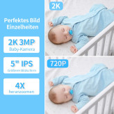 【دوربین و ضبط با صفحه نمایش 5 اینچی IPS 2K】- مانیتور کودک KAWA با دوربین، صفحه نمایش 12.7 سانتی متری IPS با کیفیت بالا، دوربین 2K، انتقال دیجیتال 2.4 گیگاهرتز FHSS، اتصال ایمن و پایدار و نمای دیجیتال را فراهم می کند. از کارت حافظه micro SD 16 تا 256 گیگابایت / کارت TF (شامل نمیشود)، ضبط چرخهای خودکار و بازنویسی قدیمیترین ویدیو پشتیبانی میکند.