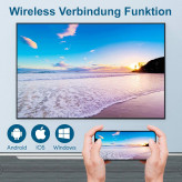 اتصال بی سیم WiFi و گیرنده داخلی بلوتوث 5.0: به لطف عملکرد صفحه نمایش آینه WiFi، می توانید این پروژکتور بلوتوث WiFi قابل حمل را به صورت بی سیم به تلفن های هوشمند iOS، اندروید و لپ تاپ های ویندوز 10 متصل کنید تا از تجربه پخش رایگان بازی های ویدیویی یا فیلم در فضای باز لذت ببرید. با عملکرد داخلی بلوتوث 5.0، می توانید بلندگوهای بلوتوث ایده آل/هدفون بلوتوث و ایرپادهای خود را در هر زمانی به صورت بی سیم متصل کنید.