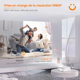 عملکرد زوم دیجیتال X/Y—این پروژکتور مقرون به صرفه همچنین دارای عملکرد زوم است، می تواند با استفاده از کنترل از راه دور و بدون حرکت دادن پروژکتور، اندازه تصویر را از 100 درصد به 50 درصد کاهش دهد و ویژگی های برتر را تجربه کند.