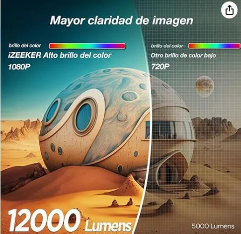12000Lux: پروژکتور قابل حمل دارای روشنایی بالای 12000 لوکس و وضوح پشتیبانی شده 1080P است. این پروژکتور مجهز به آخرین تکنولوژی رنگی NTSC است که با نسبت کنتراست رنگی 10000:1 می تواند 100 درصد رنگ ها و جزئیات را در محیط های تاریک بازیابی کند و تصویر را شفاف تر و واقعی تر کند.