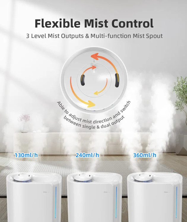 رطوبت ساز قوی، مناسب برای اتاق خواب و اتاق کودک: رطوبت ساز اولتراسونیک ما دارای یک مخزن بزرگ 6 لیتری (1.6 گالن) است که در اتاق های بزرگ تا 500 فوت مربع عالی عمل می کند. اجازه می دهد تا رطوبت طولانی مدت تا 60 ساعت.