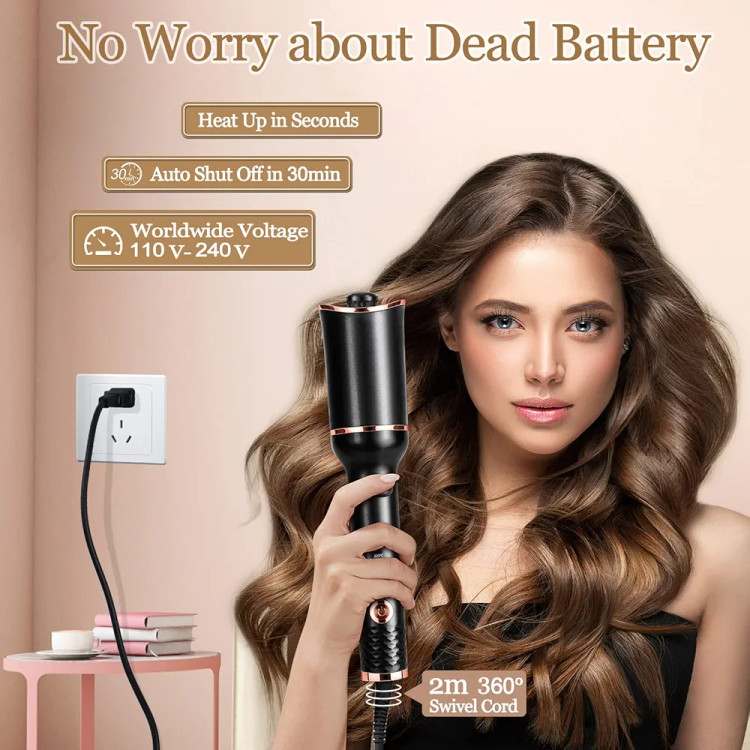 فر کننده اتوماتیک مو، اتو فر کننده خودکار با رول چرخان بزرگ 1 اینچی، 4 تنظیم حرارتی و 3 تایمر، اتو فر کننده چرخان با ولتاژ دوگانه، مشکی برند Generic