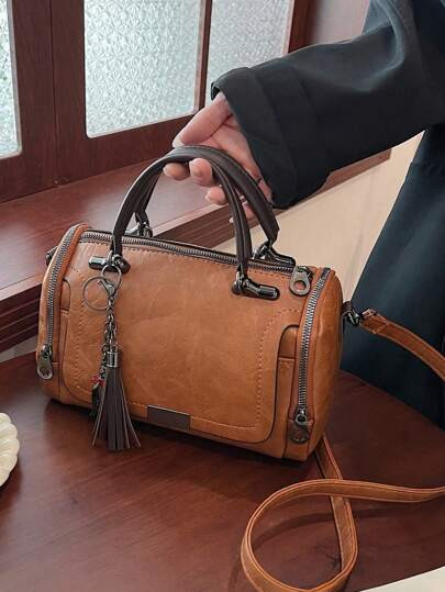 این یک کیف مد وینتیج بوستون است که توسط یک طراح حرفه ای طراحی شده است، بسیار زیبا. جنس اصلی آن از چرم PU است که ضد آب، مقاوم در برابر سایش و بادوام است. قطعات فلزی صاف، براق و زنگ زده نیستند.