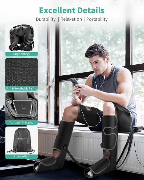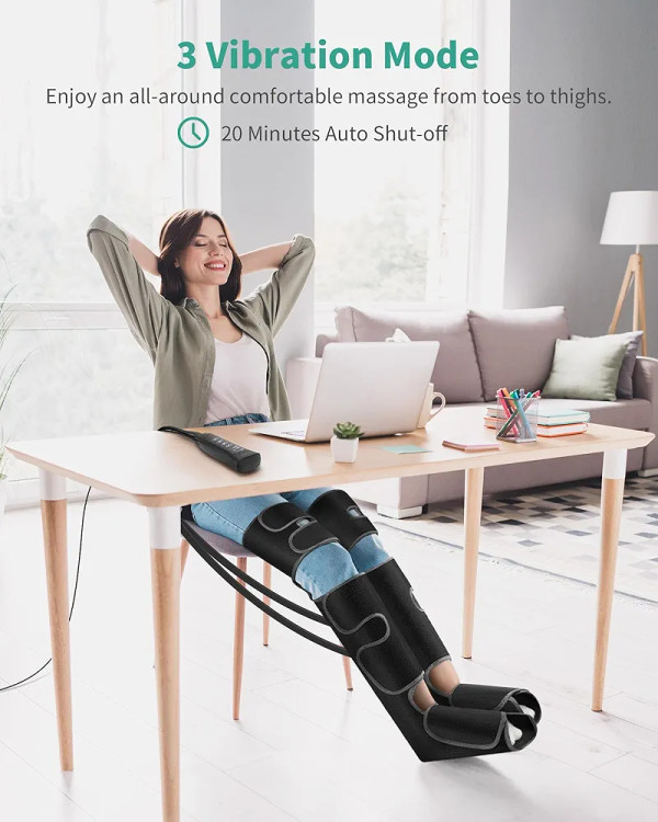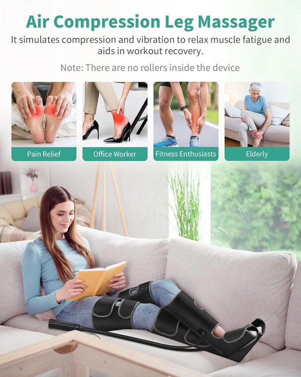 فناوری فشردهسازی هوای چرخهای: این ماساژور فشردهسازی پا از کیسههای هوای داخلی ۳ در ۳ برای باد شدن و خالی شدن متناوب هوا استفاده میکند. این دستگاه میتواند عضلات شما را عمیقاً تحریک کرده و مانند یک ماساژور حرفهای، پاها، ساق پا و رانهای شما را سفت کند. این دستگاه به تسکین درد عضلانی، تورم و خستگی کمک میکند و جریان خون را بهبود میبخشد. ایدهآل برای سالمندان، افرادی که برای مدت طولانی مینشینند یا میایستند یا افرادی که نیاز به ریکاوری ورزشی دارند.