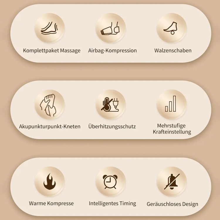 عملکرد گرمایش و تایمر: ماساژور گرم شونده پا باید به تدریج در عرض پنج دقیقه گرم شود. دما میتواند تا ۴۵ درجه سانتیگراد برسد. عملکرد تنظیم تایمر ماساژور پای شیاتسو را میتوان در ۱۵/۲۰/۳۰ دقیقه انتخاب کرد. زمان توصیه شده برای اولین استفاده ۱۵ دقیقه تا ۲۰ دقیقه است. نکات: وقتی از ماساژور پا روی مبل یا صندلی استفاده میکنید، ممکن است احساس کاملاً متفاوتی داشته باشید.