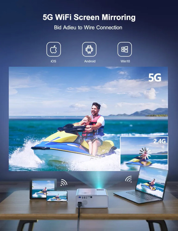 سازگاری با چندرسانهای و ارائه از طریق USB: پروژکتور بلوتوث WiMiUS W7 یک پورت خروجی USB/HDMI/AV/audio ارائه میدهد که با Amazon Fire TV Stick، لپتاپ، آیپد، هدفونهای بلوتوث، گوشیهای هوشمند آیفون/اندروید، Roku، PS5 و غیره سازگار است. پروژکتور Wi-Fi W7 همچنین میتواند فایلهای PPT/Excel/Word/PDF را از طریق USB ارائه دهد و با اتصالات پیچیده خداحافظی کند و جلسات را کارآمدتر کند. (Netflix، Amazon Prime Video و Hulu به دلیل حق چاپ پشتیبانی نمیشوند.)