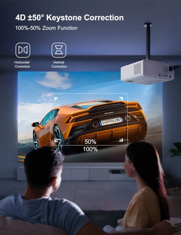 🔥【تصحیح کیستون ۴D/4P و عملکرد زوم ۵۰٪】: پروژکتور فضای باز WiMiUS W7 از تصحیح کیستون ۴D عمودی یا افقی پشتیبانی میکند که برای تصحیح دقیق ایدهآل است و منجر به پخش مستطیلی از هر زاویهای میشود. عملکرد زوم دیجیتال نوآورانه به شما کمک میکند تا اندازه صفحه نمایش را از ۱۰۰٪ افقی یا عمودی به ۵۰٪ بدون حرکت دادن دستگاه کاهش دهید و بقیه را فقط میتوان تا ۷۵٪ تنظیم کرد.